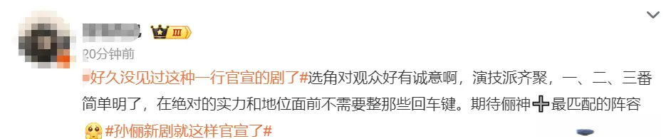 简简单单一行,就把该剧的演员介绍了,其他出演的演员并没有出现在,这条官宣的消息里。