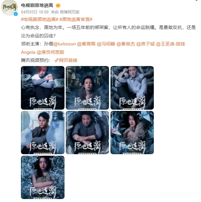 而这次,孙女士的新剧《原地逃离》,终于到了要开机的时候,剧方在网上公布了演员阵容。