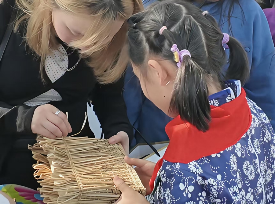 一位来自俄罗斯的留学生表示:“我真的很喜欢这里的春天,因为它很温暖,也很有新鲜感。”她对非遗草编工艺产生了浓厚兴趣。当得知教她编织的“老师”竟是当地小学生时,她既惊喜又感动。